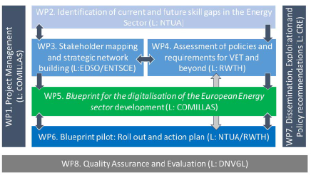 WP2 covers the Preparation tasks regarding the identification and documentation of current and future skill needs in the Energy sector, led by NTUA. This WP includes the definition of the state of the art and the vision of the Energy sector and its main technological, social and economic challenges from now to 2050. It also includes the identification of the stakeholders in the Energy Value chain (Industry, Suppliers, Researchers, VET providers, recruiters, policy makers and social representatives) and their associate skill gaps regarding digitalisation. WP2 integrates the work of previous and current EU programmes and initiatives to provide the foundations for WP3 and 4.